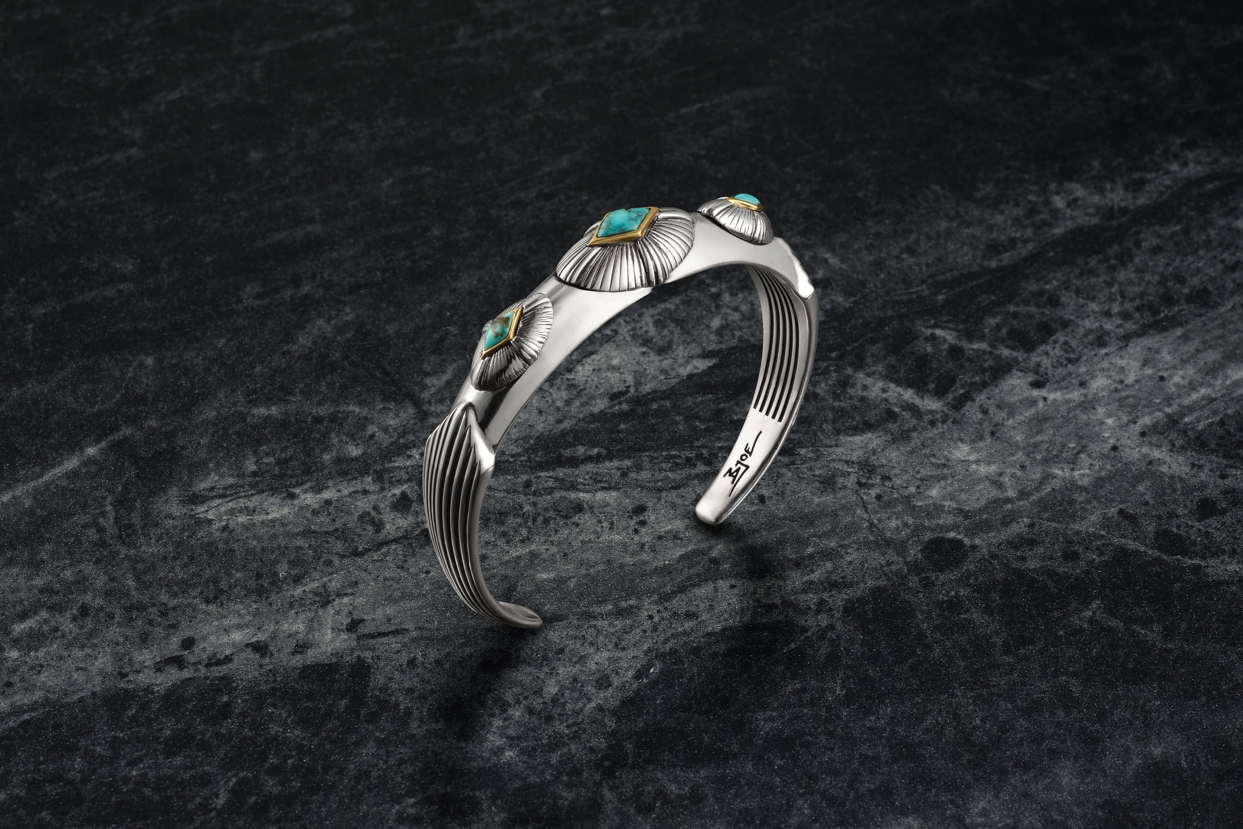 Bo Joe is a Dinè (Navajo) and Mouache Kaputa (Utè) artist who specializes in cultural silversmithing techniques and high grade turquoise to create his artwork. This blend of traditional, textural design with modern elegance creates a hybrid jewelry that speaks to both classic and contemporary tastes. Each piece is carefully handcrafted with focus on quality materials and thoughtful details. Bo’s creations complement both everyday wear or special occasions.